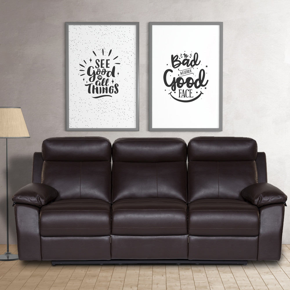 Your guests will definitely enjoy the Lazino three-seater recliner sofa, upholstered in brown PVC. It features a spacious seating area with warm and fuzzy furnishings that make you feel comfortable. A simple pull of the latch will recline the two-section adjustable back with neck support and a compact footrest.