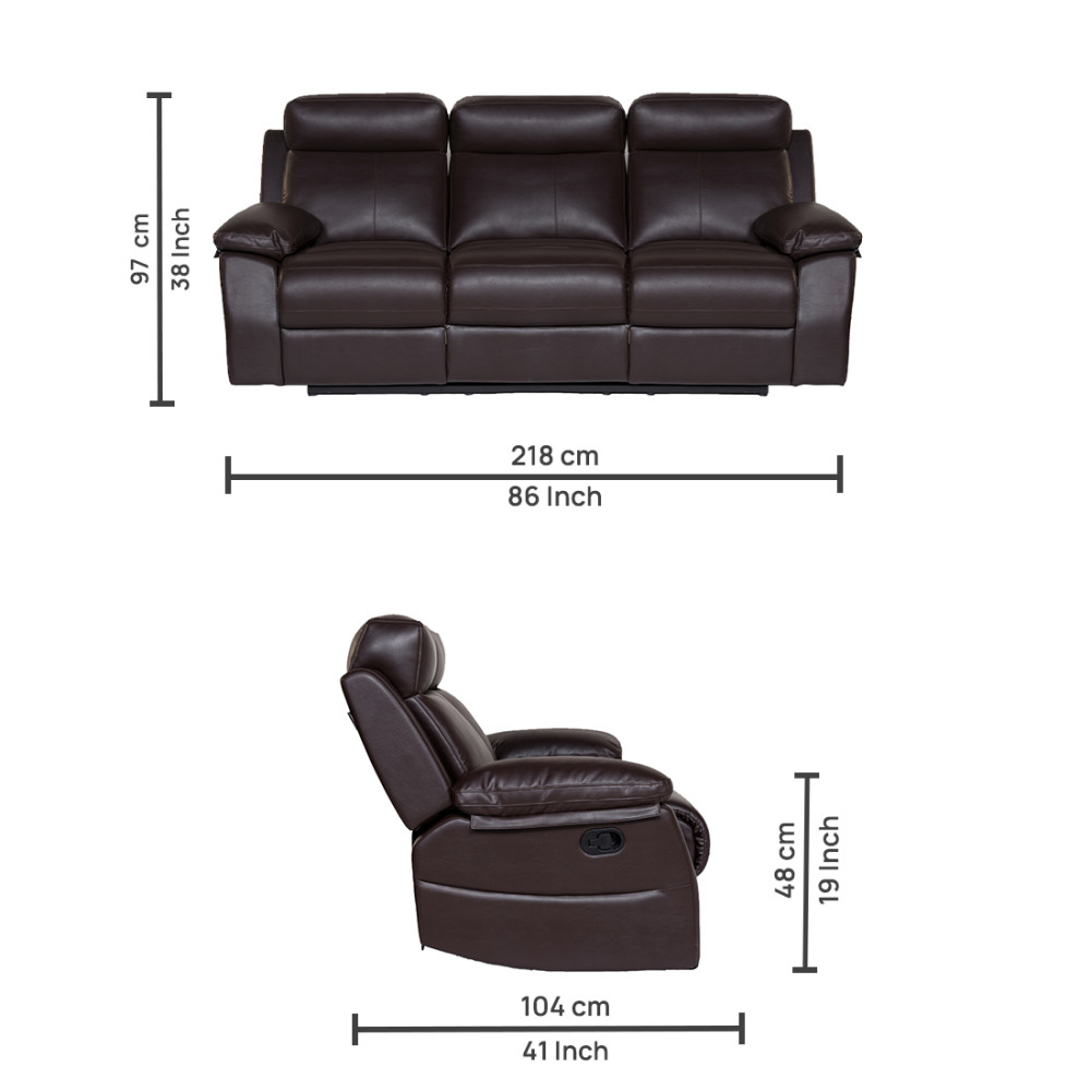 - Product Code: Three Seater Recliner Sofa - Lazino Brown