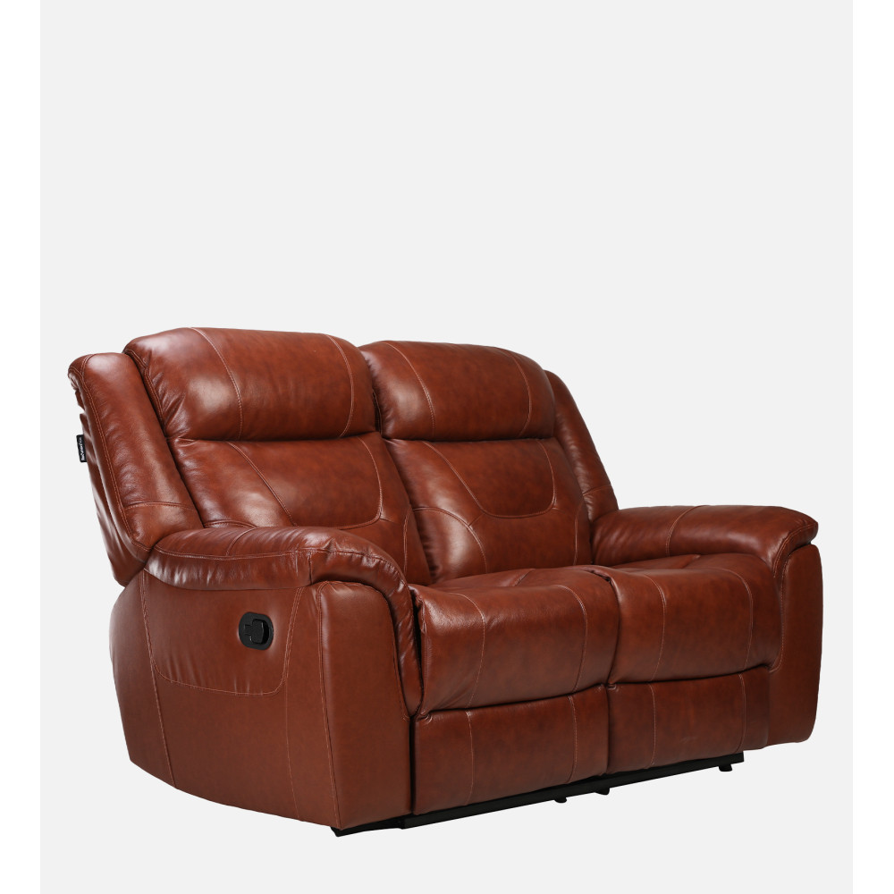 Two Seater Recliner Sofa - Joy Half Leather (Chestnut Two Tone)