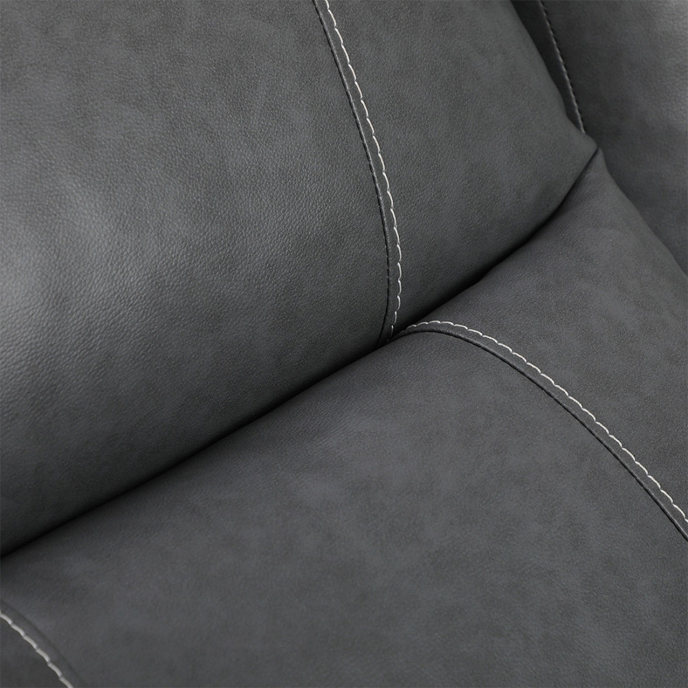 Introducing the Two Seater Recliner with Console - Model Lite, a harmonious blend of style and functionality. Enveloped in the chic Grey 2 Tone hue and adorned with supple Leatherette Upholstery, it radiates contemporary charm. The motorized reclining mechanism effortlessly adjusts your seating, while the built-in console enhances convenience with storage and cup holders. Perfect for shared moments, from movie marathons to relaxed conversations, this recliner redefines relaxation. With its modern design and motorized innovation, the Model Lite elevates your living space, offering both comfort and utility in a sophisticated package.