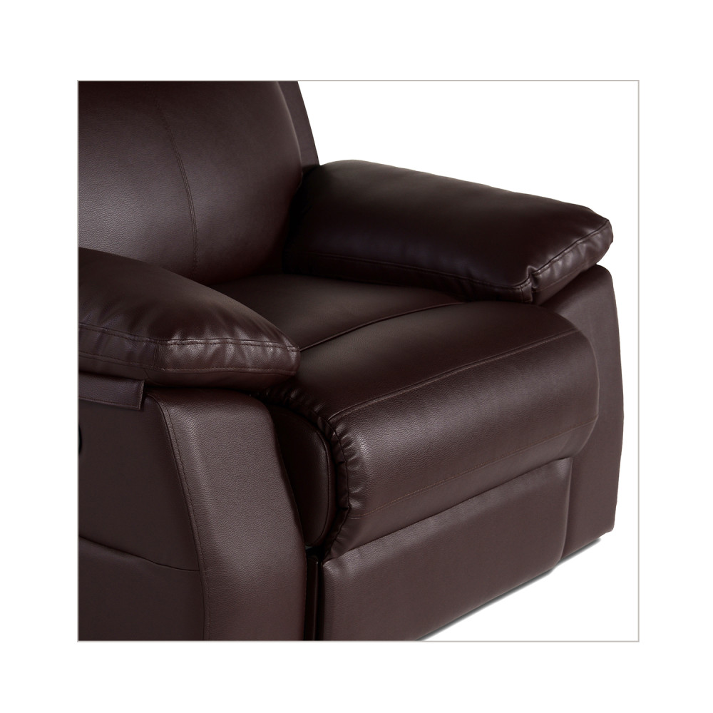 The Lazino recliner chair is a luxurious and comfortable addition to any home. With its sleek and modern design, it is not only a functional piece of furniture but also a statement piece that will enhance the look of any room. The high-quality dark brown PVC upholstery is both durable and elegant, providing a comfortable seating surface for hours of relaxation.